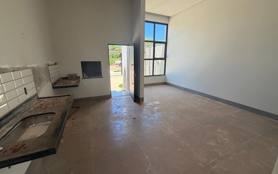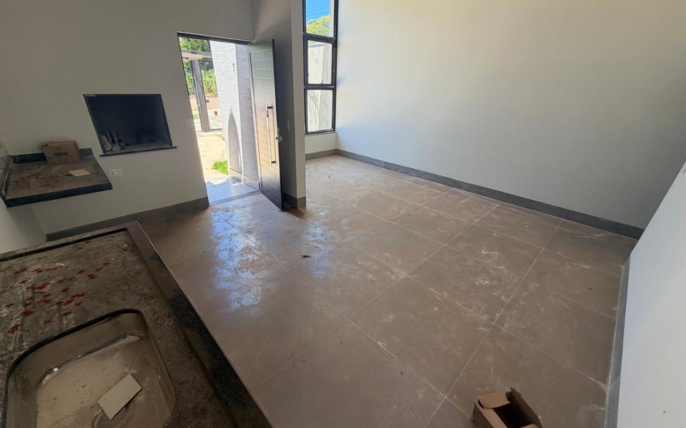 Térrea em fase de acabamento contendo paisagismo, garagem pra 02 carros, sala com pé direito alto, janela enorme o que torna o ambiente claro, churrasqueira interrogada a cozinha americana, lavanderia separada que pode ser facilmente transformando em um lindo jardim de inverno, banheiro social, 01 quarto e 01 suíte com opções de posicionamento do ambiente graças ao projeto elétrico fenomenal. Acabamento de primeira, ótimo projeto elétrico, nichos para cortinas e muito mais.